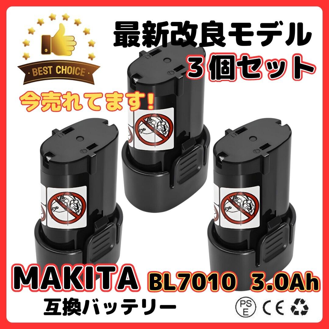 マキタ makita 互換 バッテリー BL7010 3.0Ah 7.2V 3000mAh 掃除機 (BL 7010/3個)