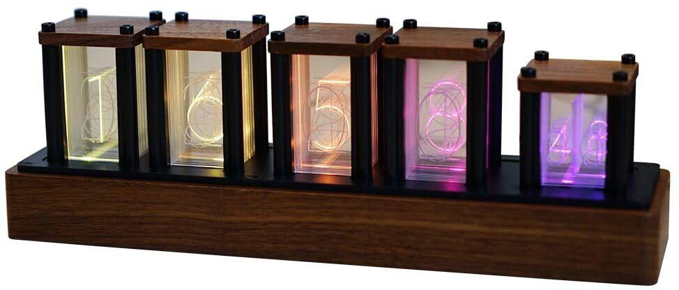 ニキシー管風置き時計 レトロモダン木製クロック 1600万色 RGBフルカラーLEDデジタル時計 ニキシー管風DIY卓上時計インテリア (ブラックウォールナット)