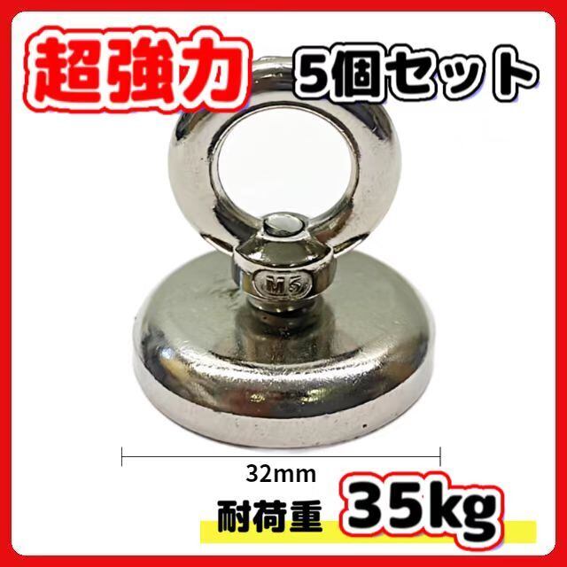 超強力 マグネットフック 磁石 32mm 5個セット 耐荷重35kg ネオジム磁石 ステンレス マグネット フック 強力 磁力 防腐 防錆