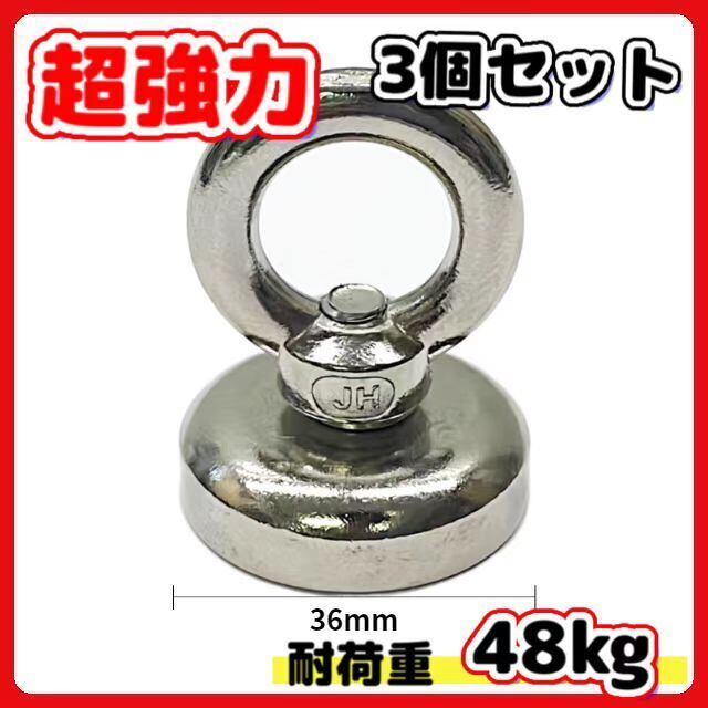 超強力 マグネットフック 磁石 36mm 3個セット 耐荷重48kg ネオジム磁石 ステンレス マグネット フック 強力 磁力 防腐 防錆