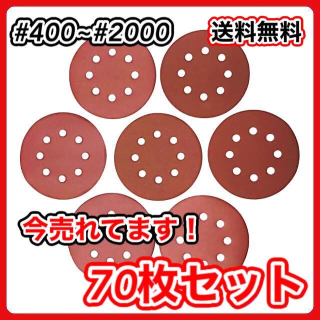サンドペーパー 125mm径 8穴 電動 サンダー サンディング ディスク #400~2000 70枚セット 集塵穴付き サンダーペーパー 研磨 ヤスリ マジックテープ