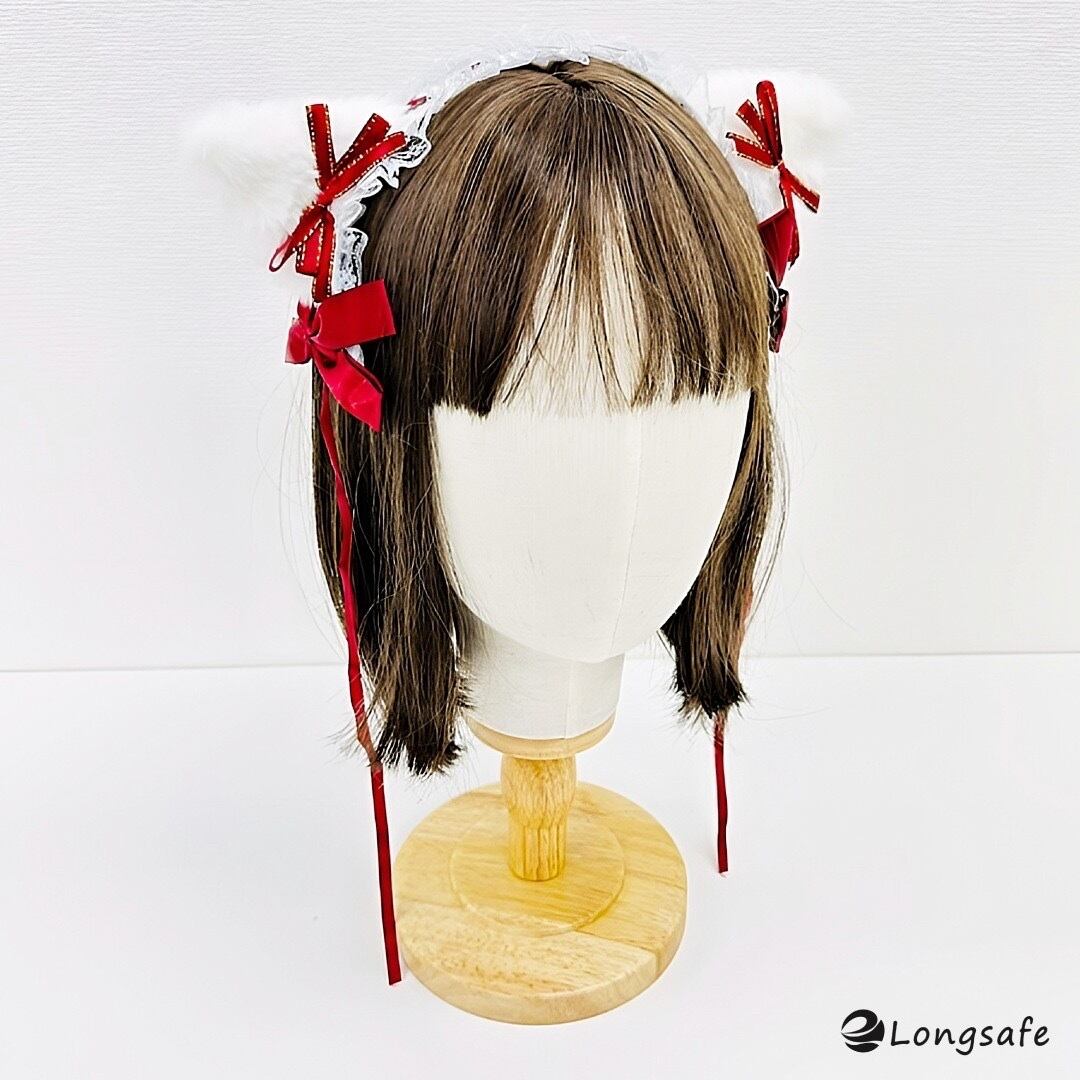 猫耳 ふわふわ ねこ耳 ロリータ ヘッド ドレス カチューシャ 3WAY コスプレ 衣装 フリル 髪飾り かわいい ねこみみ ヘアアクセサリー レディース