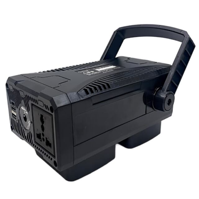 青色のLEDライトが点灯し 出力が一目でわかります。軽くてコンパクトなデザインでアウトドア用としても使えるポータブル電源です 懐中電灯 付で 3段階調節機能 を搭載しており、停電時に照明として利用可。また災害時にはストロボモードが役立ちます。ハンドルを回転させることができるので屋内でも屋外でも使いやすいです。18Vバッテリーに対応 3種の出力方法 最大4台 同時充電可能。1つ100Vコンセント、2つUSBポート、1つtype-cポート搭載しております。スマホ パソコン USBファン 等の充電が出来ます。