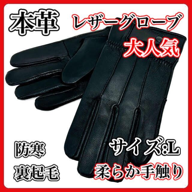 レザー グローブ メンズ 黒 ブラック 本革 手袋 L サイズ カジュアル バイク おしゃれ レディース おすすめ 裏起毛 防寒 防風 冬