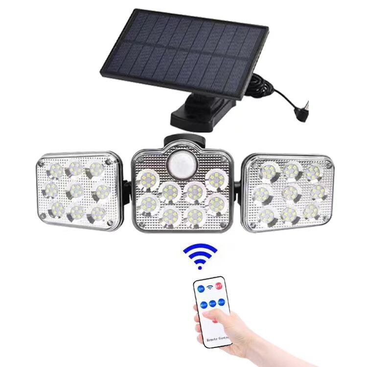 センサーライト ソーラー 式 屋外 人感 防水 分離 型 室内 LED 庭 パネル 玄関 防犯 駐車場 IP65 3灯式
