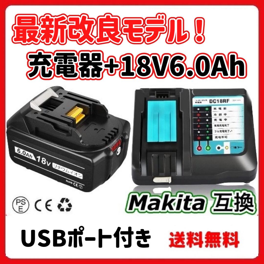 マキタ 充電器 + バッテリー セット 互換 DC18RF と BL1860B(1個+1台) makita USB BL1830B BL1840B BL1850B BL1860 BL1890B DC18RC DC18RD 対応