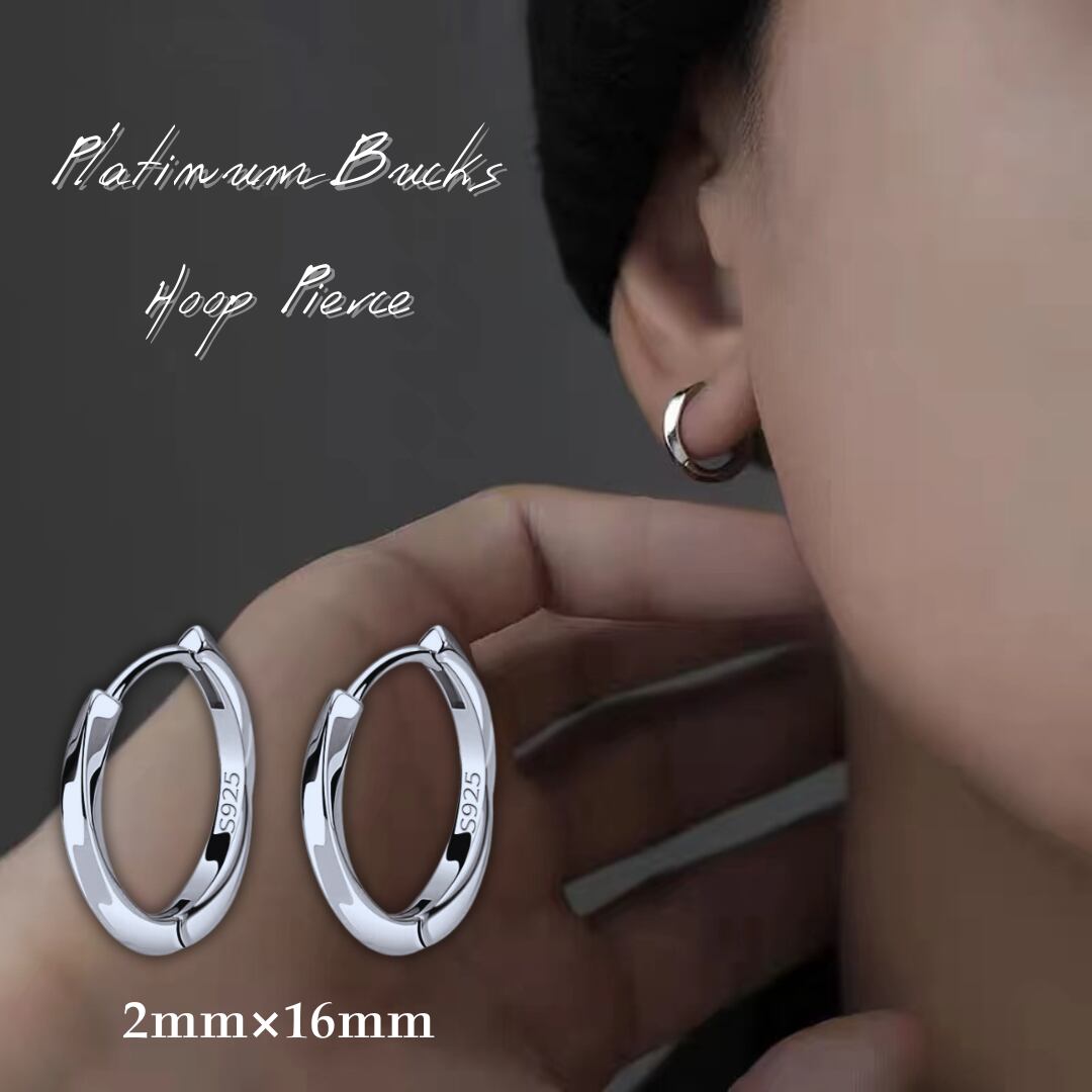 フープピアス シルバー 925 メンズ 小さめ 金属アレルギー対応 リング 両耳 レディース ピアス プラチナ コーティング 細め 16mm 2mm (HER01)