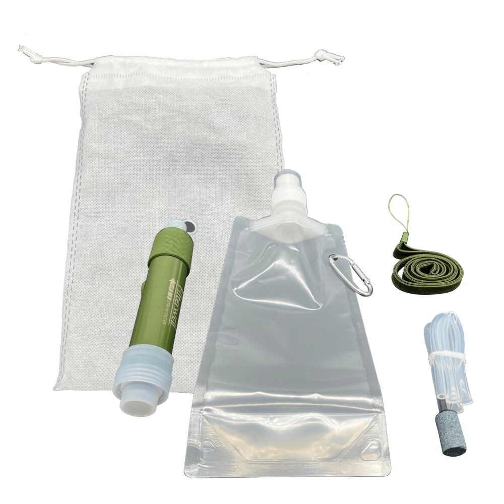 [longsafe] 携帯浄水器 飲料水 ろ過 細菌 微生物除去 BPAフリー 災害 断水時対応 防災グッズ ペットボトル接続可 ウォーターバッグ付属